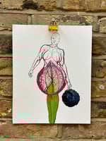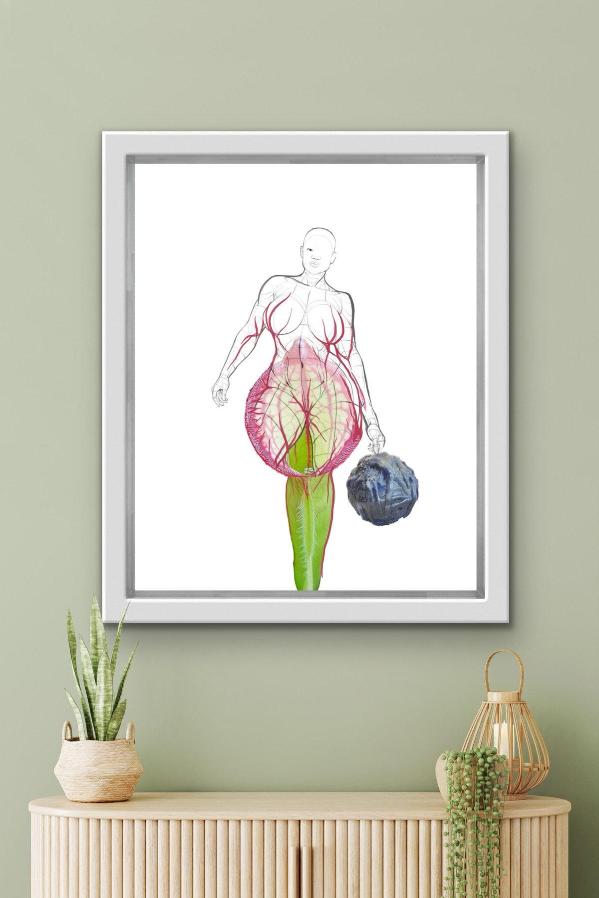 This work references fibroids, often described as ‘benign.’ Synonyms such as ‘harmless,’ ‘mild,’ and ‘temperate’ reveal how language can minimise lived realities. The piece questions this framing while also recognising the strength required to endure.